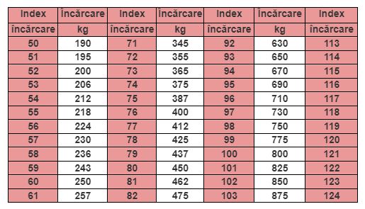 94 - Capacitate de încărcare/indice de sarcină